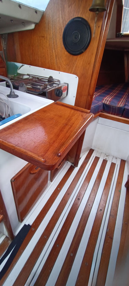 Interior / Confort: 4 plazas, corte de baterías, anafe cardánico, garrafa, remo, bichero, bacha/